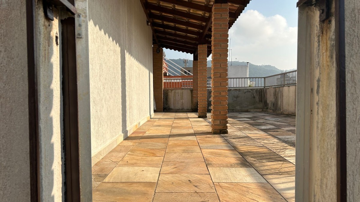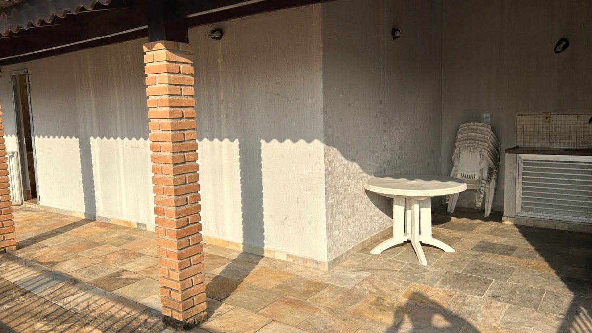 Ampla área superior coberta, equipada com pia e churrasqueira.
