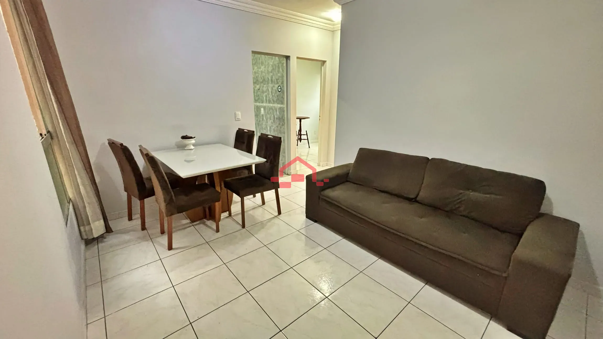 - 01 sala ampla para 02 ambientes com sofá e mesa de 4 lugares.