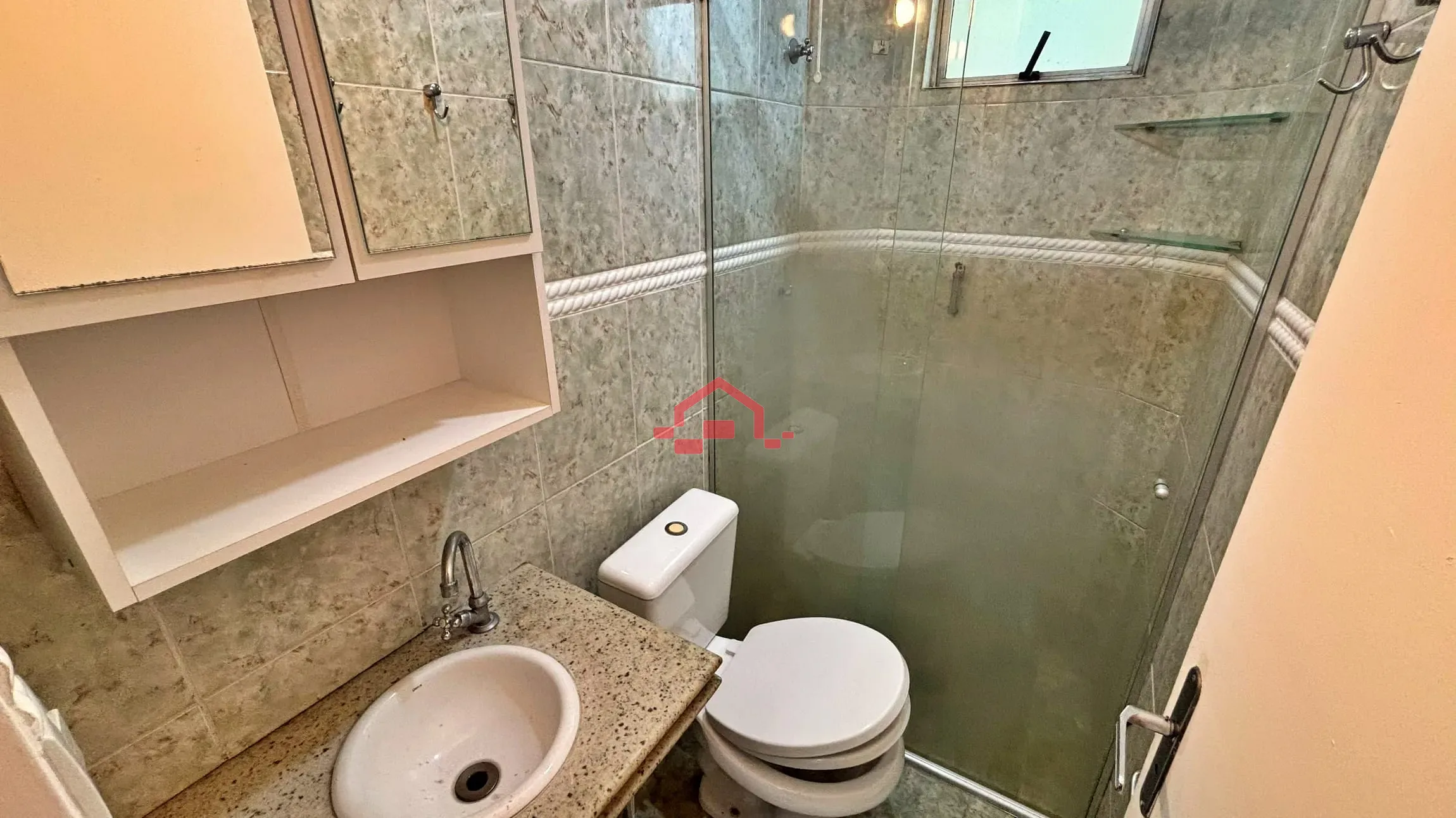 - 01 banho social com box em vidro temperado e armário sobre a pia.