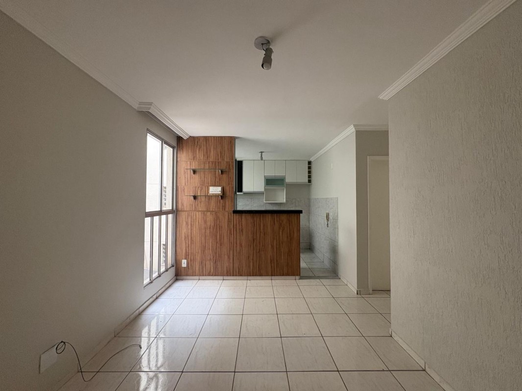Apartamento de 02 quarto, sala ampla, 01 banheiro social, cozinha, área de serviço e 01 vaga de garagem