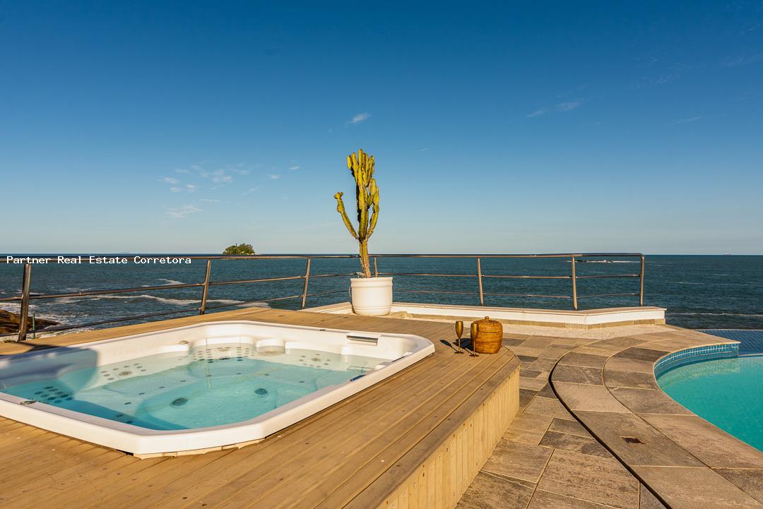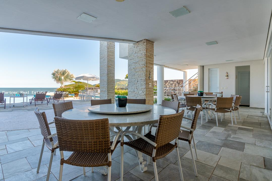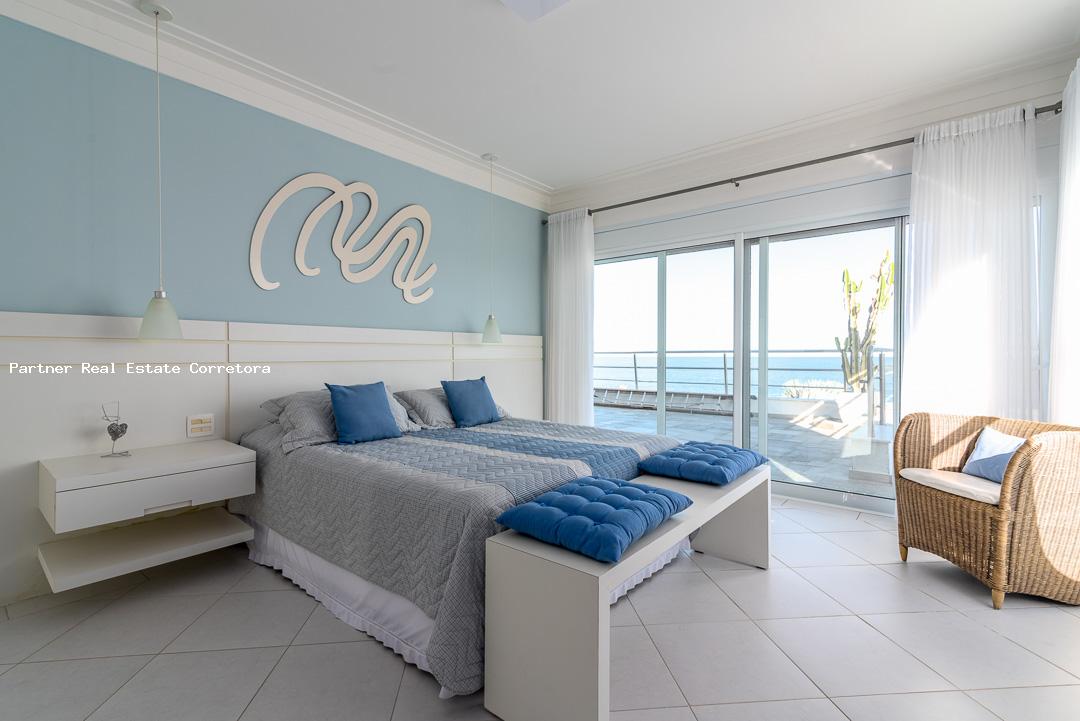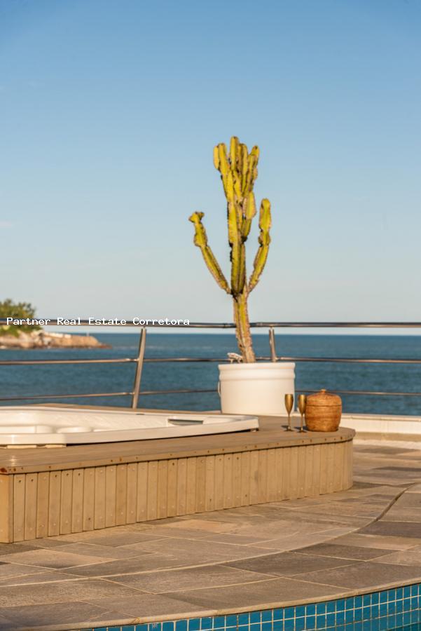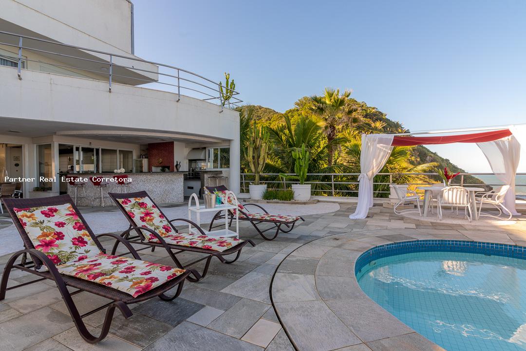Casa com 4 andares e elevador, bonito acabamento requintado, com o melhor visual, sossego e privacidade, mas com muito conforto. Possui fachada contemporânea revestida de textura e relevantes áreas com pedra canjiquinha, que potencializa as áreas internas. Finamente mobiliadas e decoradas. 10 espaçosas e elegantes suítes, banheiras de hidromassagem, varandas e muita vista para o mar. Os revestimentos das suítes são em porcelanato entremeados com mármore. Sala com mais de 100m2 que com forma harmoniosa delimita os quatro amplos ambientes internos, arejados, totalmente envidraçados e voltados para área da piscina e hidro, desfrutando de exuberante vista, dois lavabos, escritório e extenso home theater e ofurô. Deslumbrante espaço gourmet com churrasqueira, forno de pizza, bancadas e balcão para preparação de alimentos e aperitivos. Área total do terreno: 1.400 m² Área útil: 818 m²