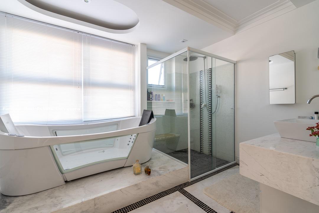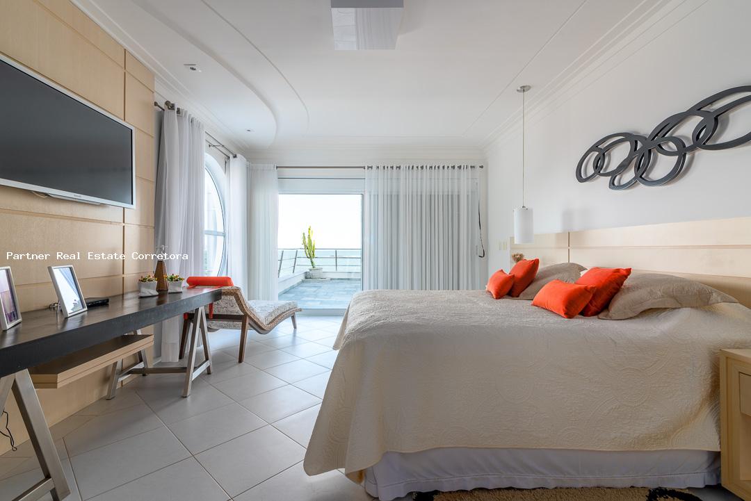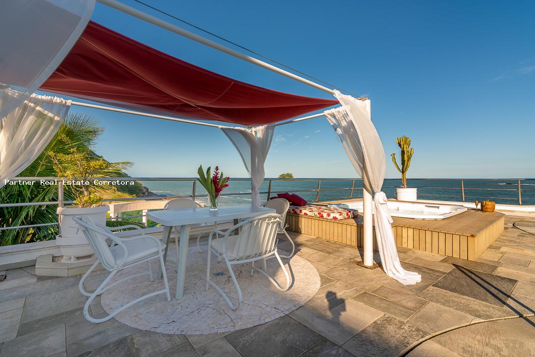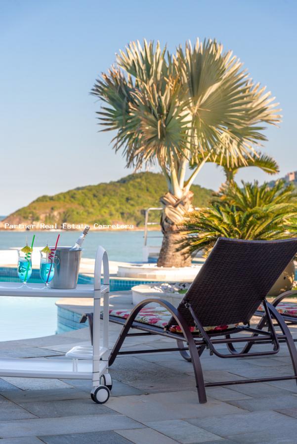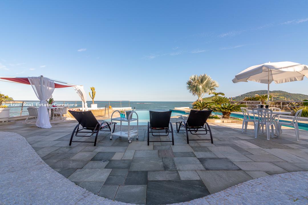 Casa com 4 andares e elevador, bonito acabamento requintado, com o melhor visual, sossego e privacidade, mas com muito conforto. Possui fachada contemporânea revestida de textura e relevantes áreas com pedra canjiquinha, que potencializa as áreas internas. Finamente mobiliadas e decoradas. 10 espaçosas e elegantes suítes, banheiras de hidromassagem, varandas e muita vista para o mar. Os revestimentos das suítes são em porcelanato entremeados com mármore. Sala com mais de 100m2 que com forma harmoniosa delimita os quatro amplos ambientes internos, arejados, totalmente envidraçados e voltados para área da piscina e hidro, desfrutando de exuberante vista, dois lavabos, escritório e extenso home theater e ofurô. Deslumbrante espaço gourmet com churrasqueira, forno de pizza, bancadas e balcão para preparação de alimentos e aperitivos. Área total do terreno: 1.400 m² Área útil: 818 m²