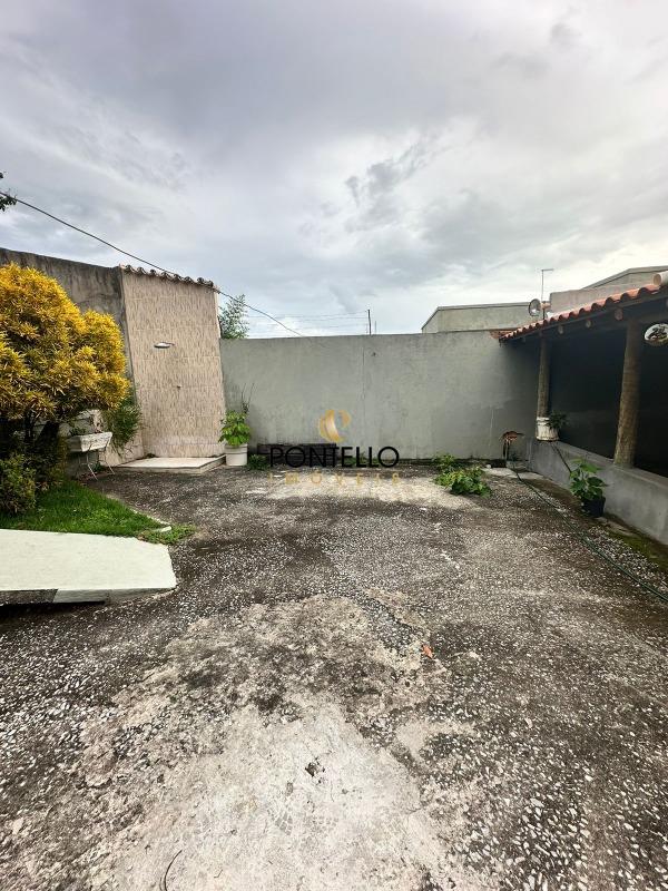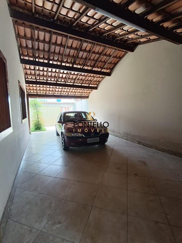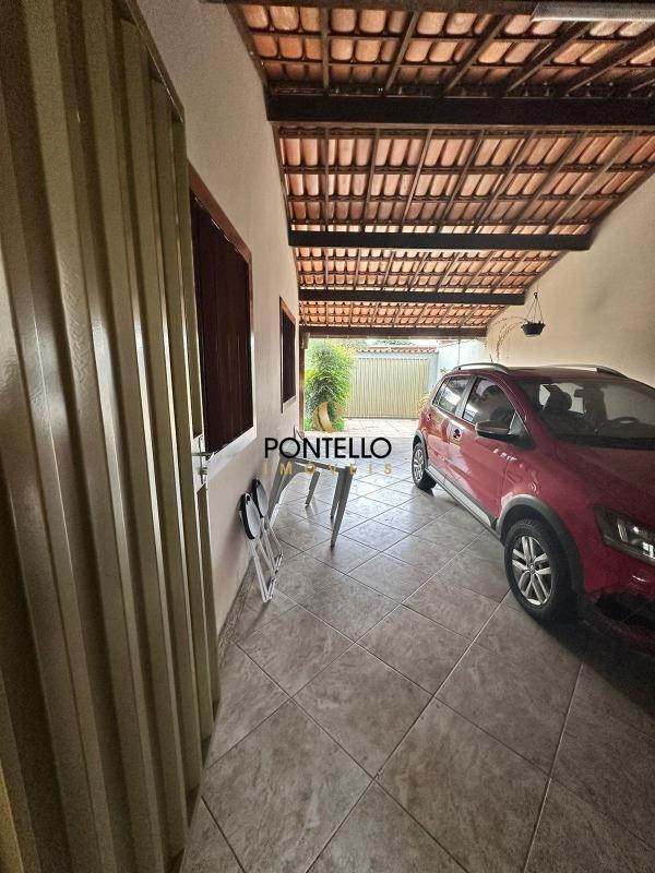 Casa com 2 quartos, sala, cozinha, 3 banheiros, varanda ampla, área de serviço, quintal, garagem para 2 carros, jardim.