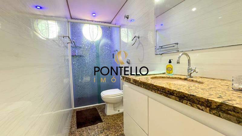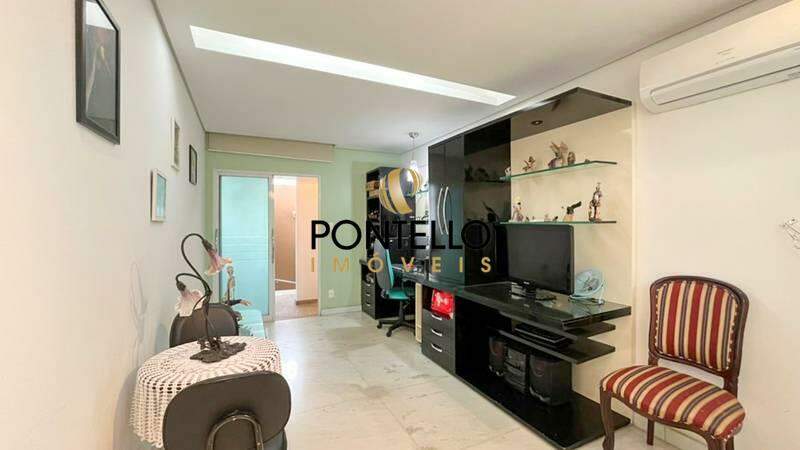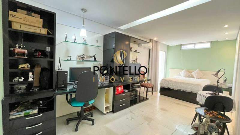 3 quartos amplos, todos com piso em mármore, armários e iluminação planejada, sendo uma suíte com closet, varanda, bancada em granito, armários, espelho e box em blindex, sendo o terceiro quarto transformado em escritório