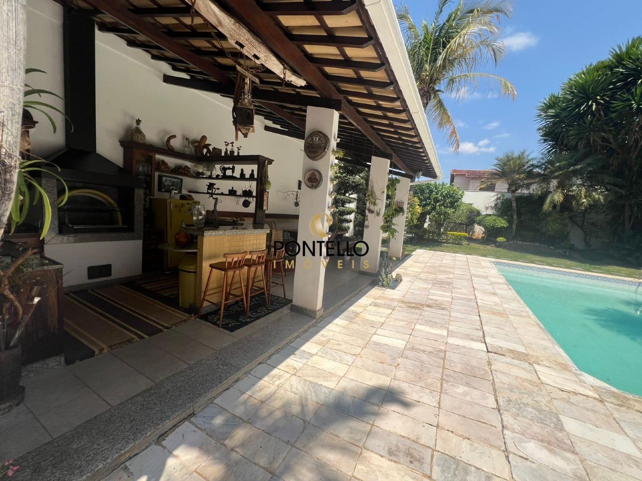 Casa com 4 quartos, todos com armários planejados, sendo uma suíte com closet e banheira, sala de jantar, sala de TV, cozinha planejada, quarto de despejo, 5 banheiros sociais, área de serviço, área gourmet com piscina, sauna, churrasqueira, 10 vagas de garagem.