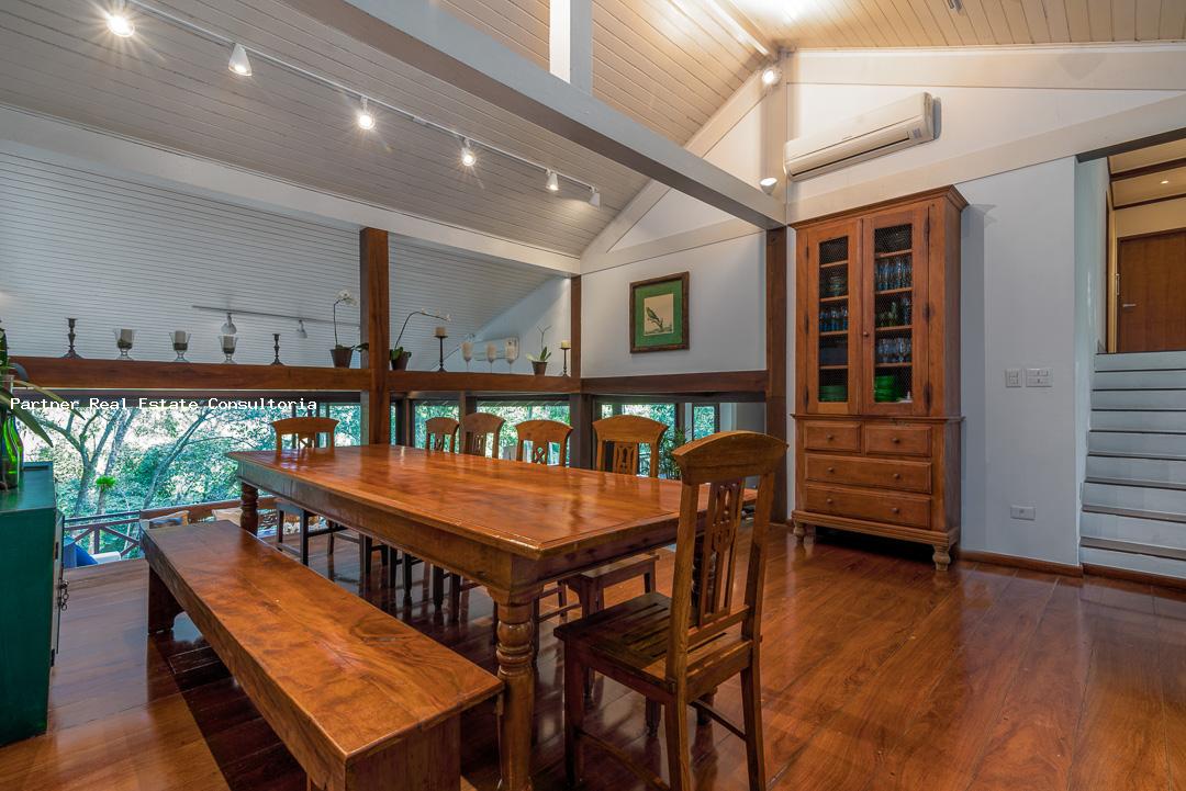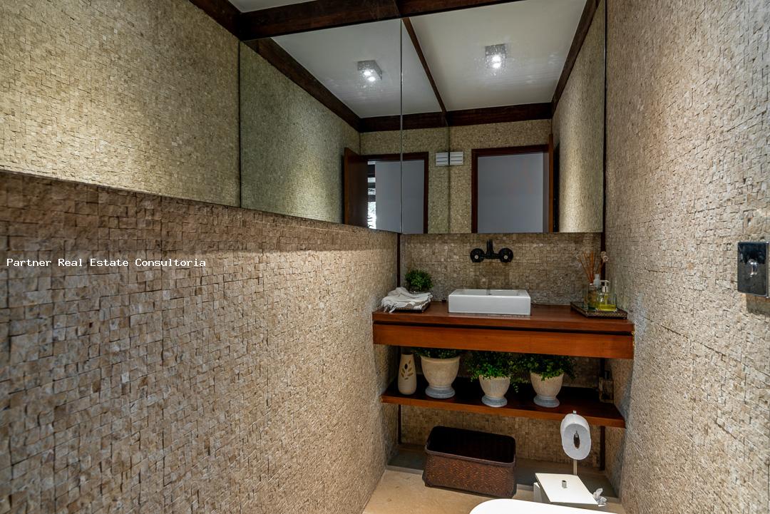 Construção impecável, espaços acolhedores e muito bem iluminados, janelões envidraçados voltados para o verde que cerca o terreno, ideal para quem preza sossego, com conforto e segurança. Área Interna Espaços amplos, ambientes bem planejados com mobiliário sofisticado e confortável. Salas de jantar e estar com decoração leve e elegante com 7 suítes Cozinha ampla, com bancada para preparação de alimentos, repleta de armários e equipamentos eletrônicos de primeira linha. Área Externa Imensa varanda com móveis e estofados especiais para áreas externas. Terraço com pia, churrasqueira móvel, mesa e cadeiras para almoços e aperitivos ao ar livre. 338m² construidos.