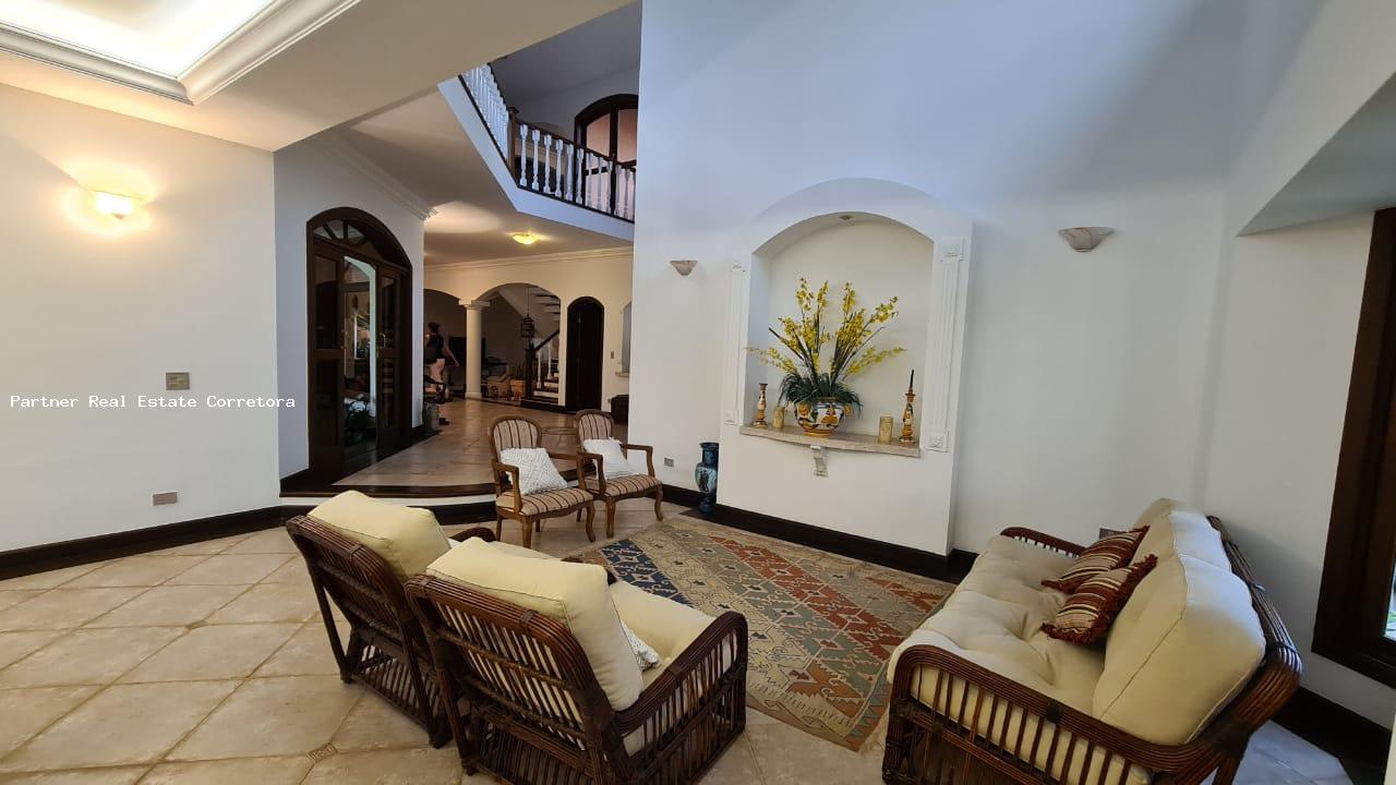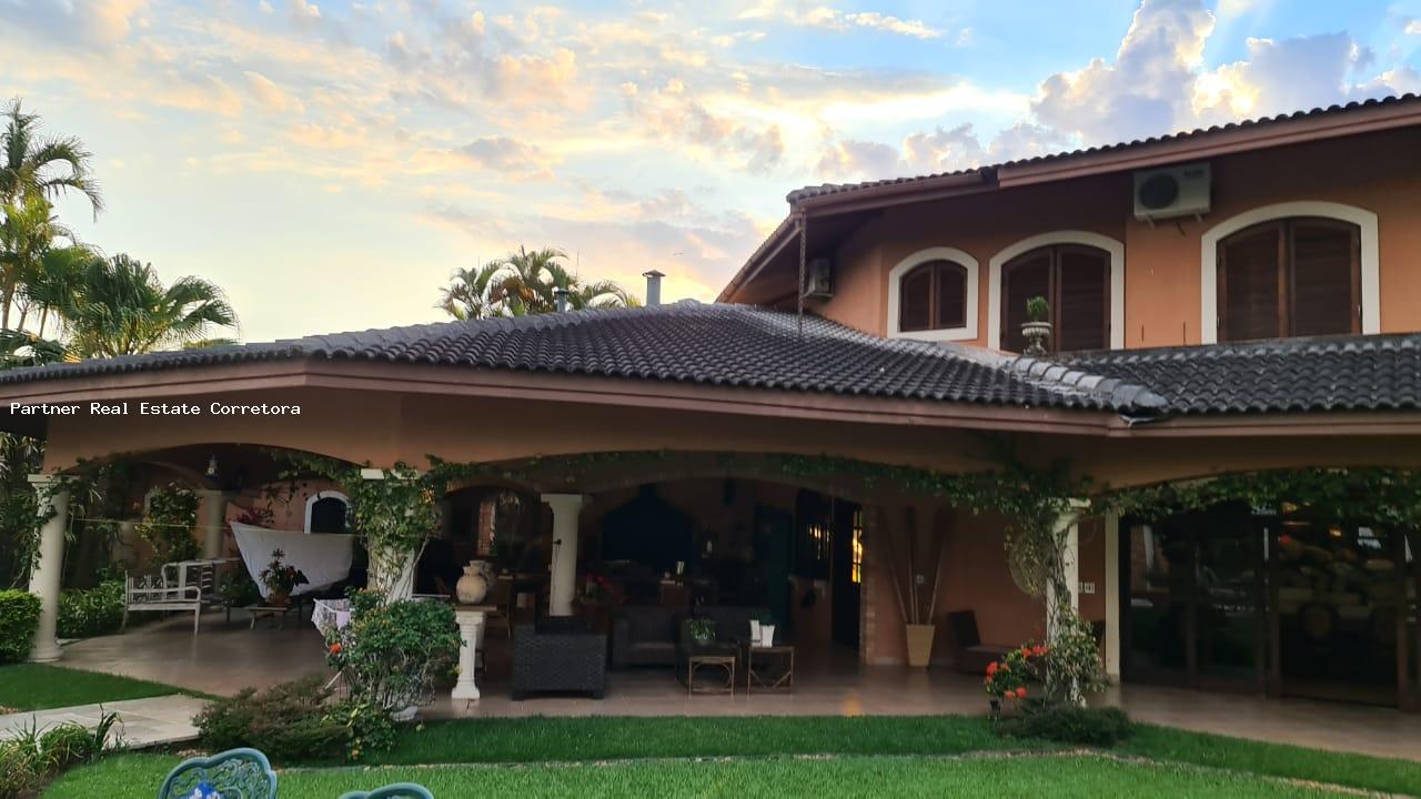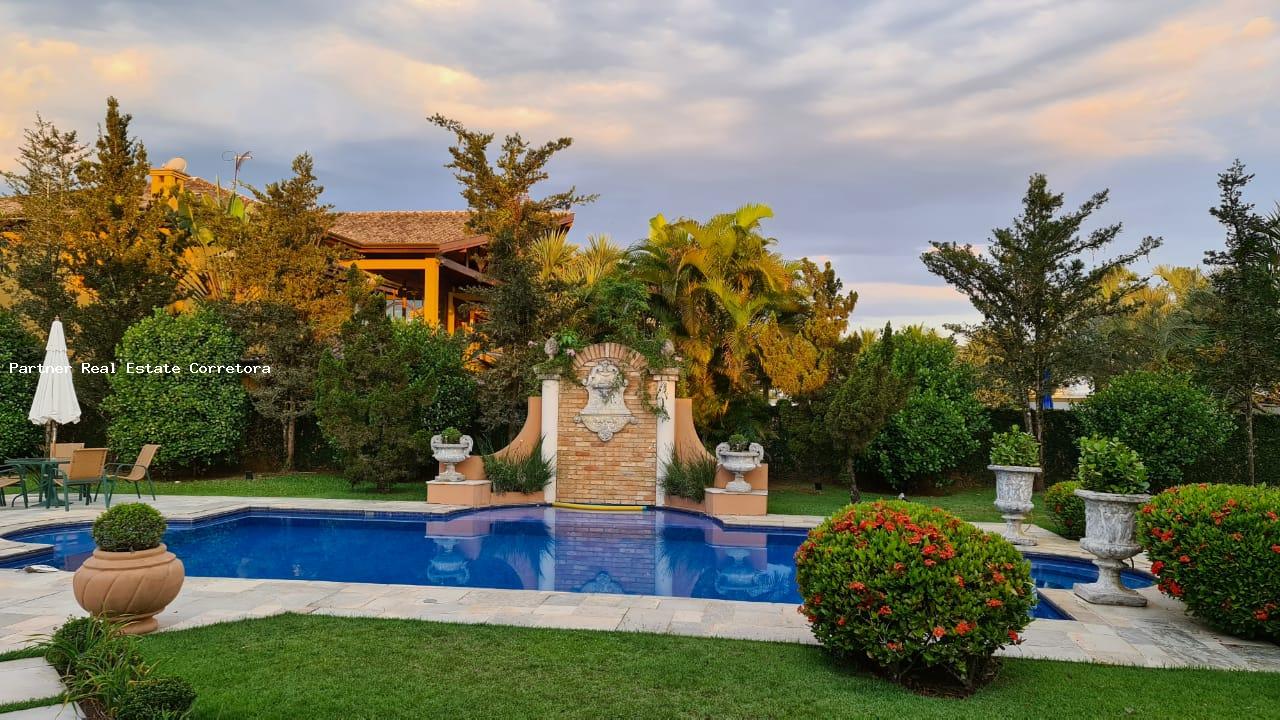 Condomínio fechado com segurança 24 horas,portaria com controle de acesso shopping, mercado, grande área verde com lazer, playground, pista de cooper, clube para associados, caixa eletrônico, agência bancária e U.T.I móvel 24 horas Casa 676m² 5 Suítes com mais um quarto de apoio. Excepcional imóvel, ambientado com discrição e bom gosto, Salas de estar e de jantar amplas e arejadas, com mobiliário sofisticado e confortável. Perfeita para quem exige conforto, bem-estar e segurança. Área Externa A imensa varanda em quase toda extensão da casa, repleta de mobiliário de áreas livres é o local ideal para relaxamento e momentos descontraídos. No centro do bem cuidado jardim, se encontra a cinematográfica piscina, rodeada por cadeiras reclináveis e ombrelones e uma relaxante jacuzzi Espaço Gourmet localizado na lateral do jardim, esse espaço abriga churrasqueira e forno de pizza. As mesas, cadeiras e a bancada são um convite para descontraídos almoços e jantares ao ar livre