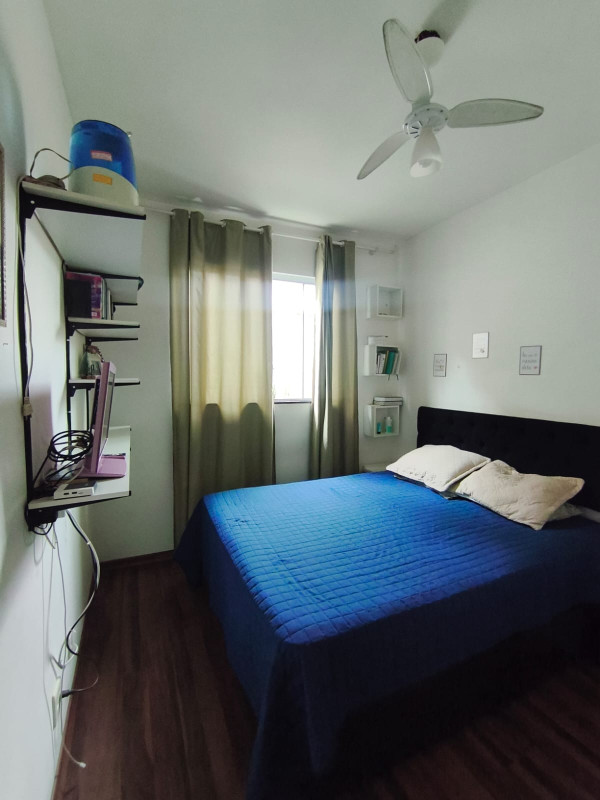 2 quartos amplos com piso laminado, guarda roupa planejado, janelas em blindex, ventilador de teto.