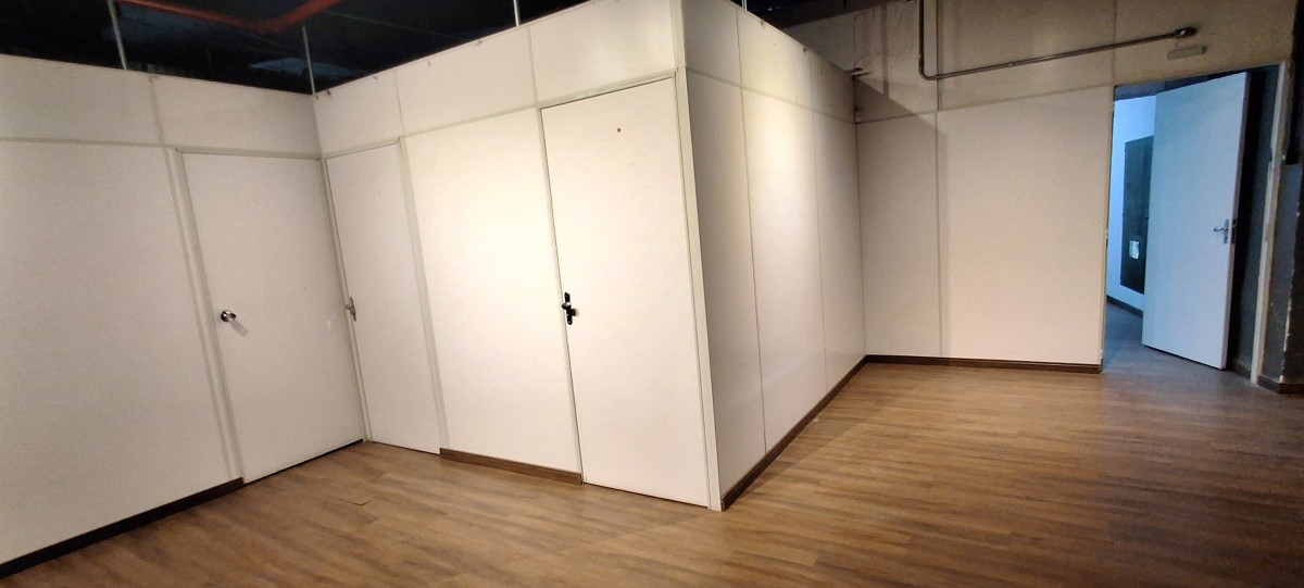 Composto por vão livre, atualmente dividido em 20 salas e 2 depósitos, além de uma entrada com garagem privativa para até 5 veículos e 3 vestiários.